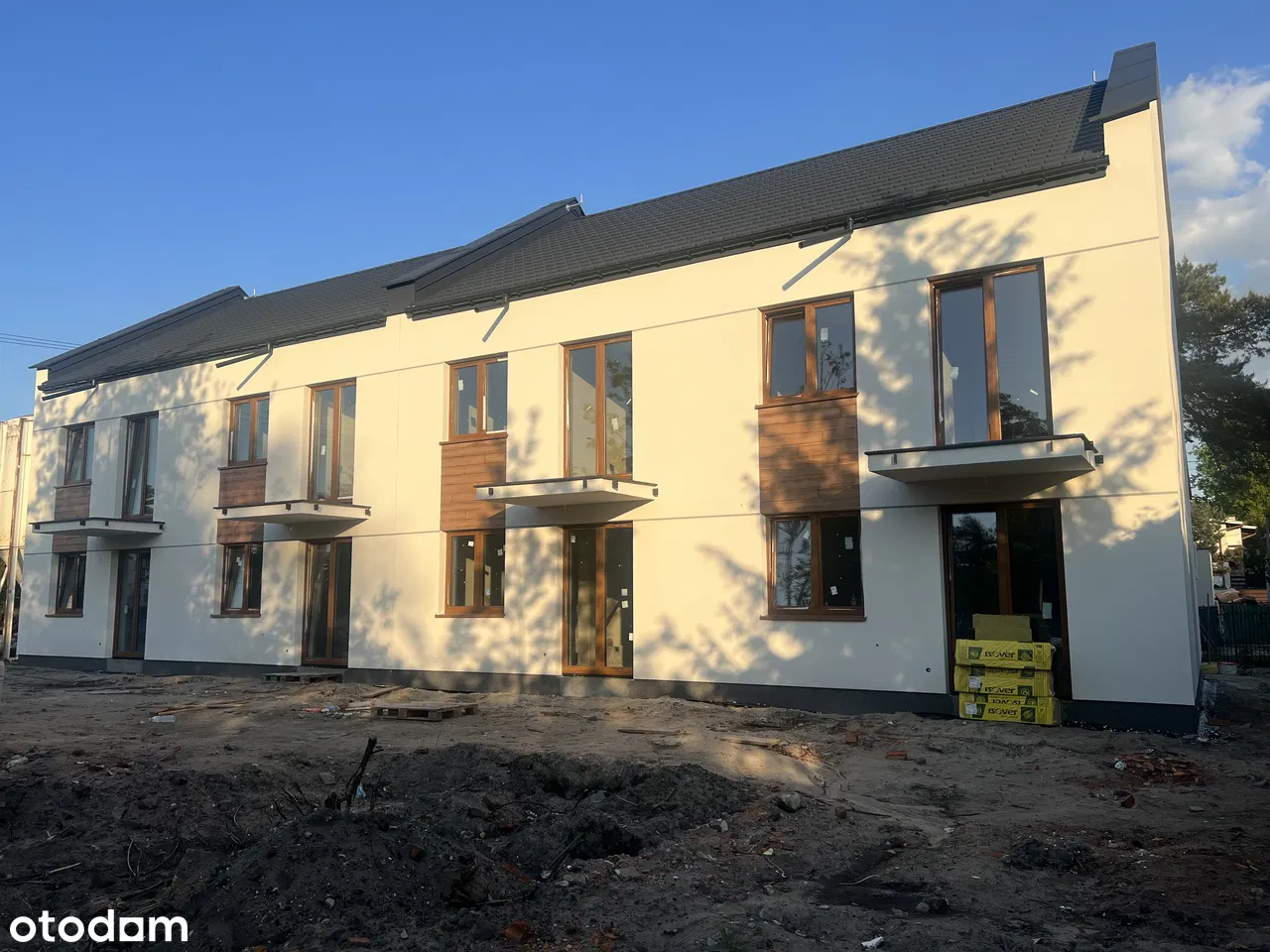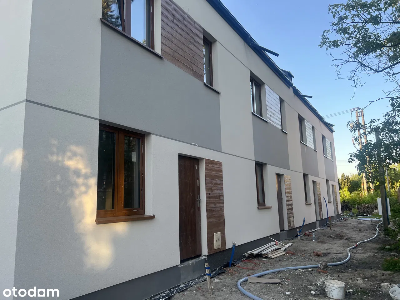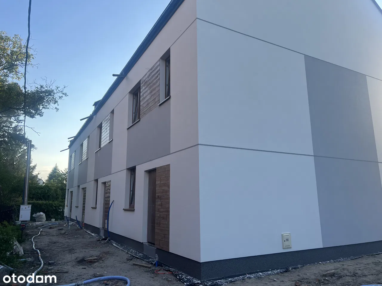 - Elewacja zewnętrzna: styropian pokryty tynkiem